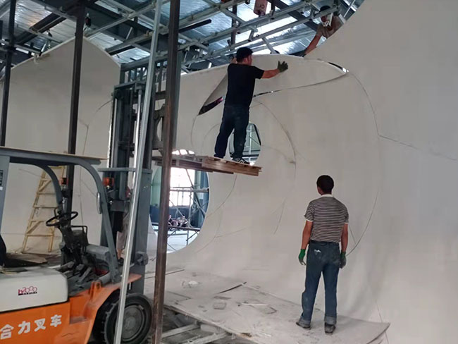 我公司工廠占地面積5000多平方米,公司具有經(jīng)驗(yàn)豐富的產(chǎn)品研發(fā)、設(shè)計(jì)、深化、生產(chǎn)、安裝、管理團(tuán)隊(duì),可為客戶(hù)從裝飾設(shè)計(jì)、產(chǎn)品深化設(shè)計(jì)建模、產(chǎn)品生產(chǎn)、現(xiàn)場(chǎng)安裝施工等一整套服務(wù)。